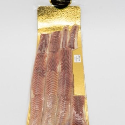 Láminas de anguila ahumada presentadas en placa, muy cómodas para cortar a medida y emplatar al instante. Perfume equilibrado, bocado untuoso y versatilidad total: nigiri, maki, tostas, ensaladas o huevos a baja temperatura. Saca la placa unos minutos antes para potenciar el aroma y pinta con AOVE suave justo al servir.